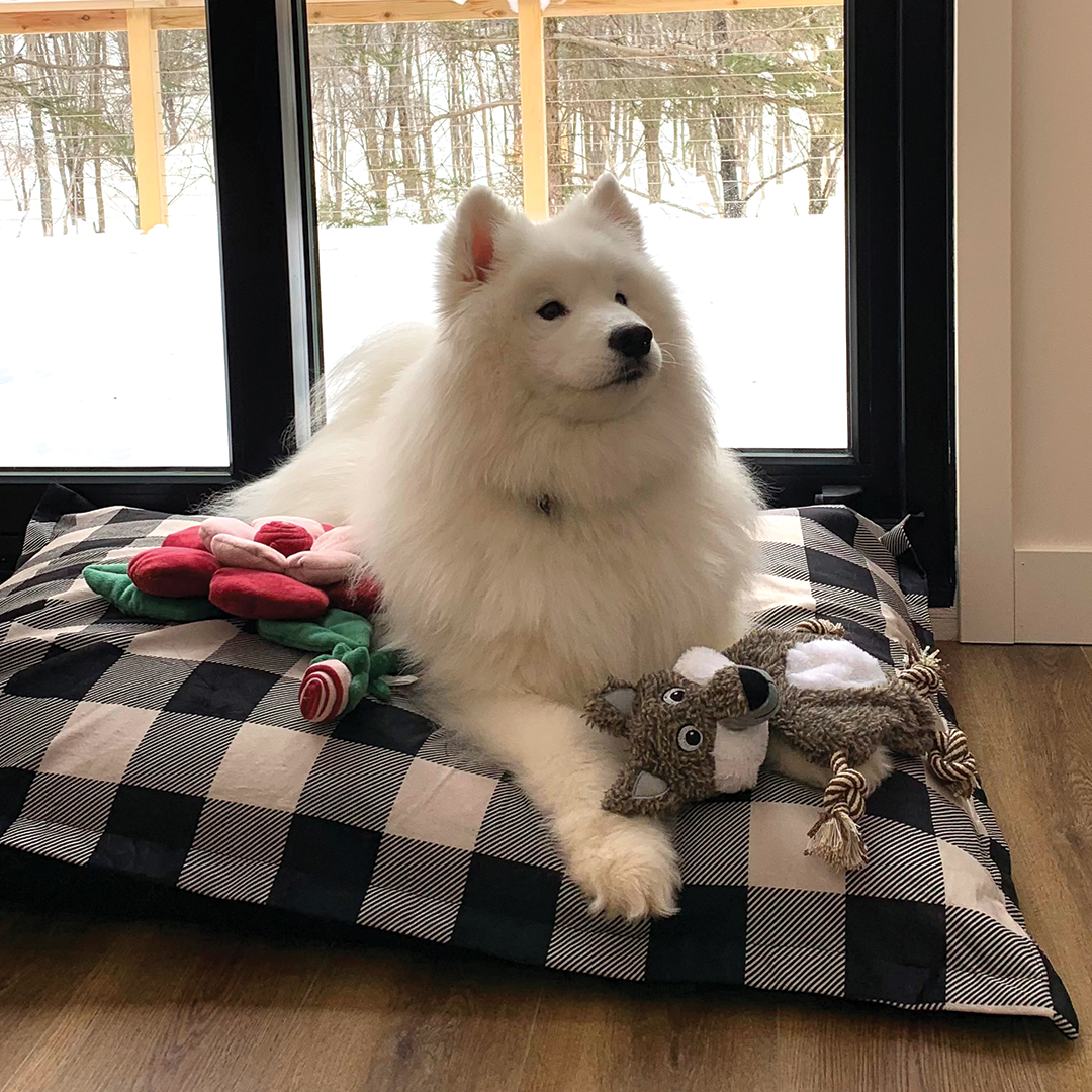 "We just wanted to say thank you for your amazing products! Our dog loved the dog bed in our room at the Château Frontenac this summer and we knew we had to get one for home. This product did not disappoint! The protector and cover are amazing quality and fit perfectly. Another bonus is that it looks amazing in the living room and matches perfectly.