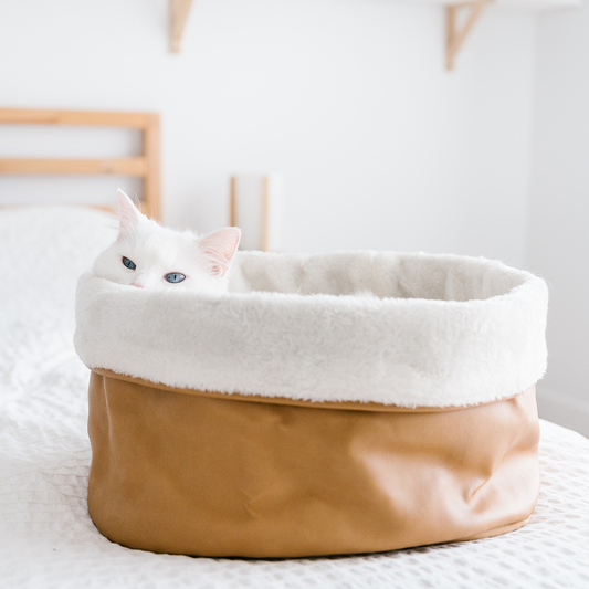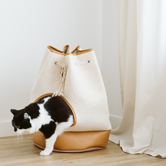 Available soonNEWCalming cat hideout bed - Sherpa and faux leather / NaturalRegular price $39.99 CADRegular priceUnit price per$0.00 CADSale price $39.99 CADAvailable soon