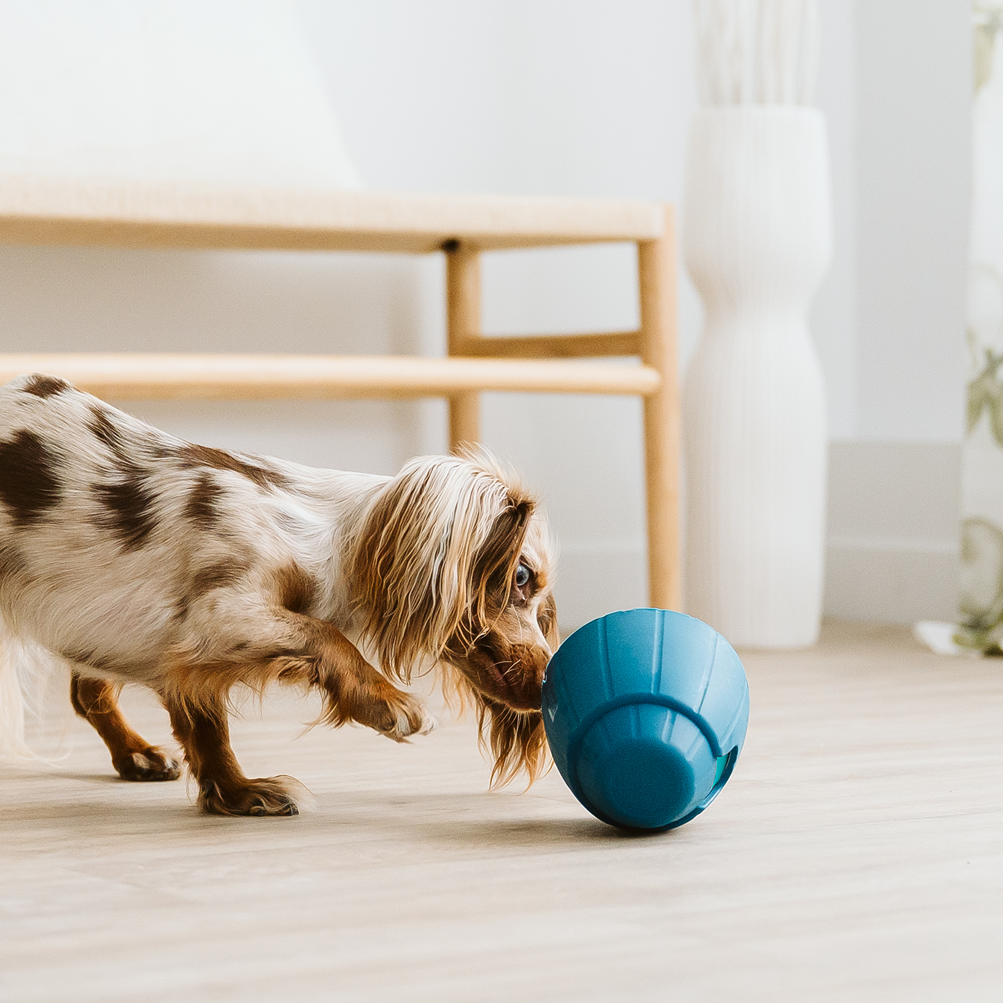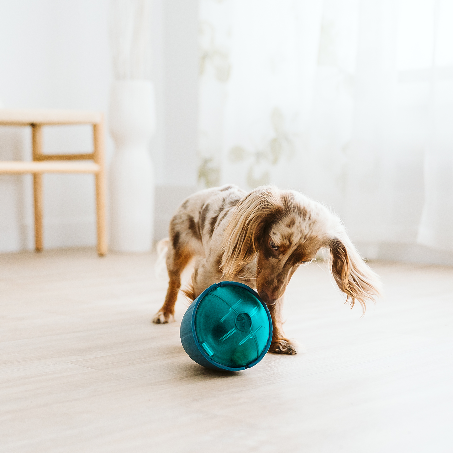 Le Snak est doté d’une ouverture latéral ajustable ainsi que de 2 disques de limitation amovibles, permettant de modifier le niveau de difficulté ou de s’adapter à différentes tailles de croquettes ou gâteries sèches. Remplissez-le avec les gâteries préférées de votre compagnon et laissez-le découvrir comment les récupérer tout en s’amusant.