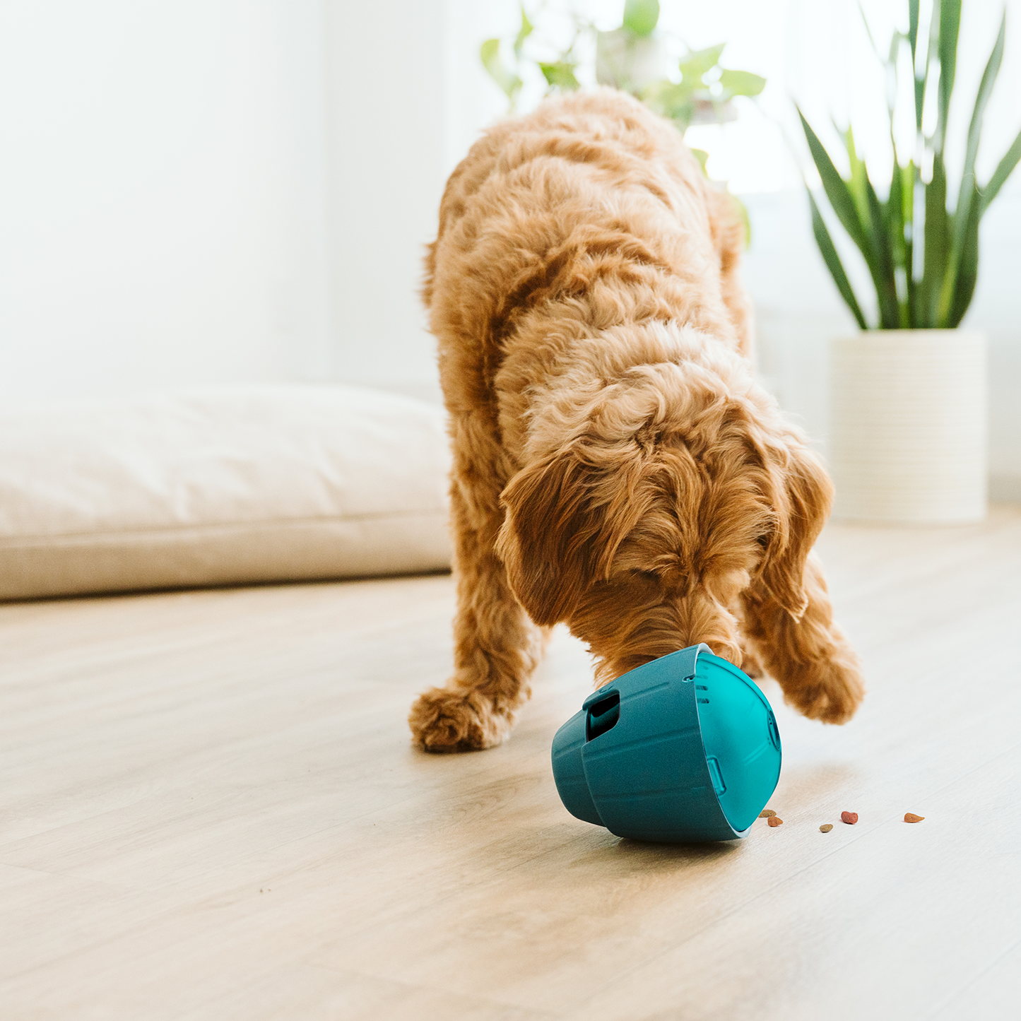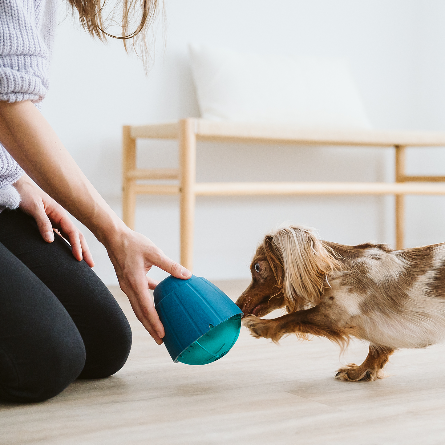 Compatible avec une variété de gâteries sèches dont les croquettes dentaires VetDiet, ajoutant une dimension soins bucco-dentaire au moment du jeu.