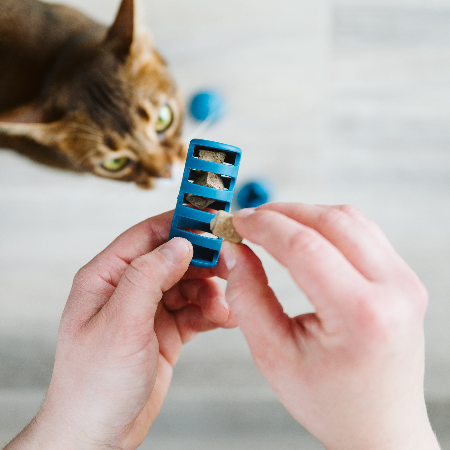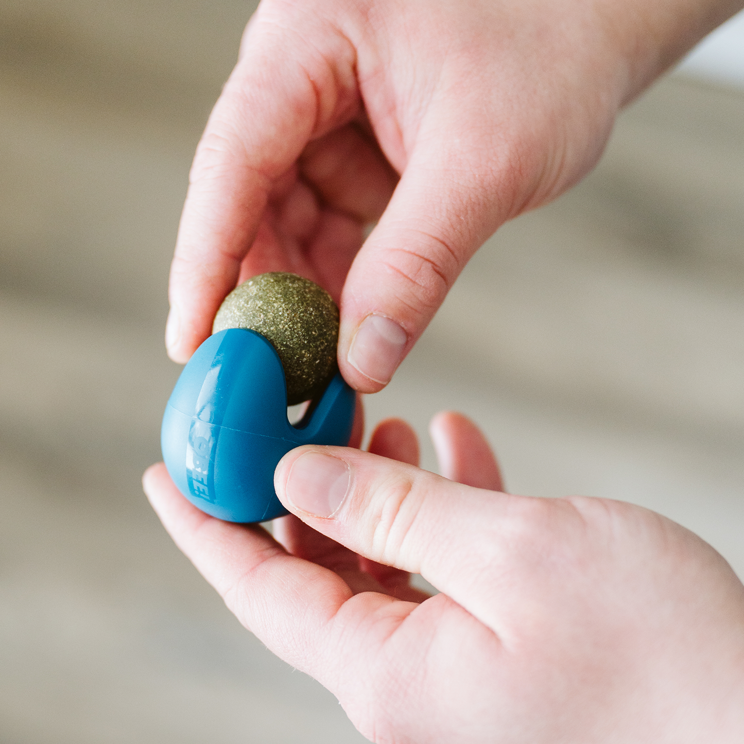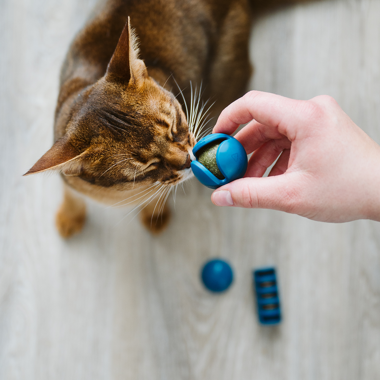 Peuvent être remplis de gâteries (Spin, Twist) et d'une balle d'herbe a chat (Spin)