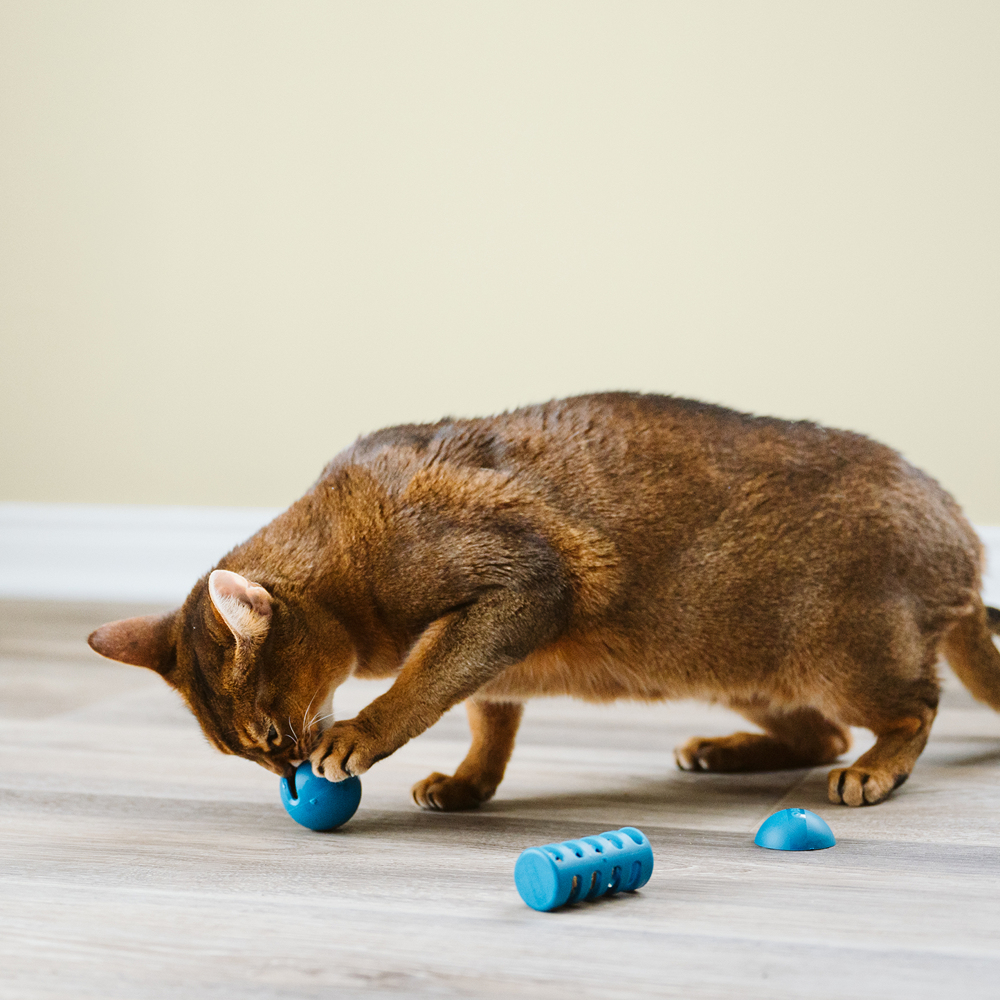 Spin : Une balle polyvalente qui peut être remplie de gâteries ou même d’une balle d’herbe à chat pour une expérience enrichissante et alléchante.