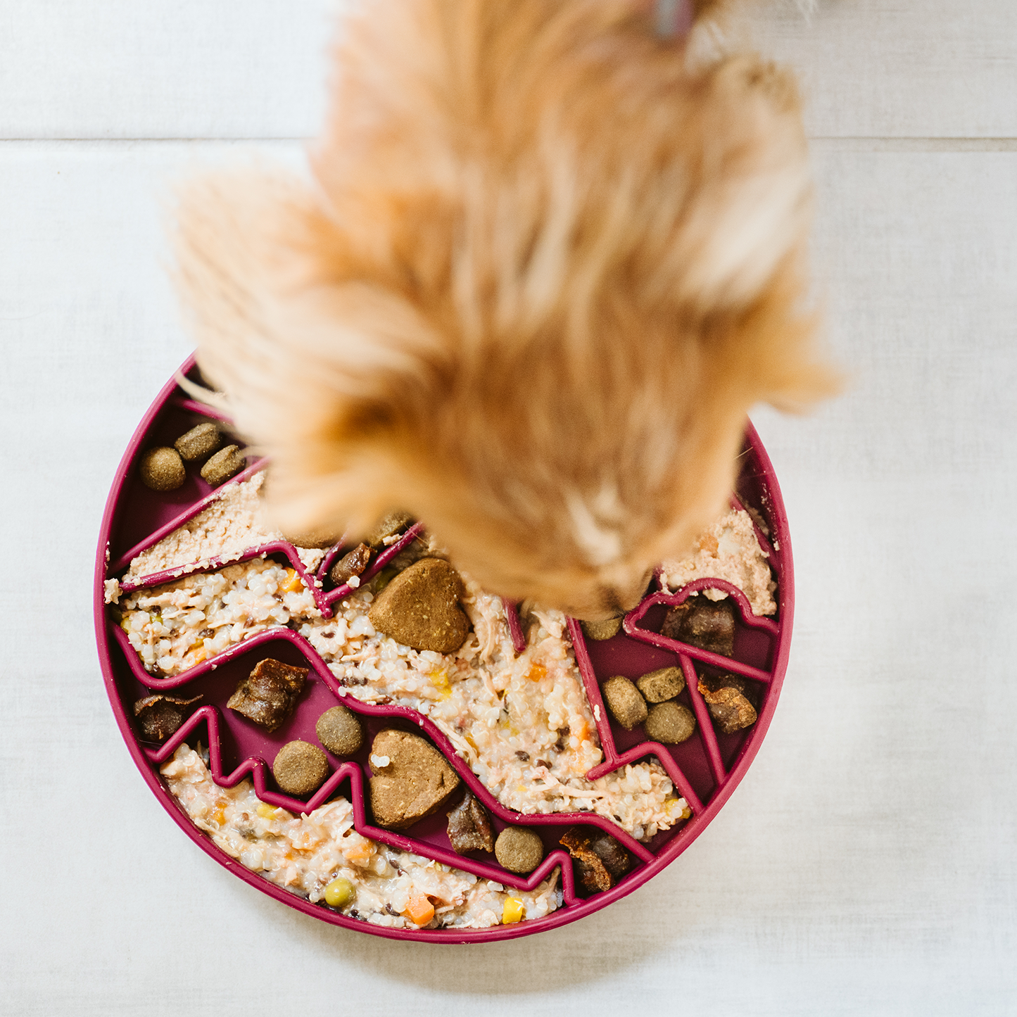 Convient a la nourriture sèche ou humide, faisant office à la fois de bol et de tapis à lécher.