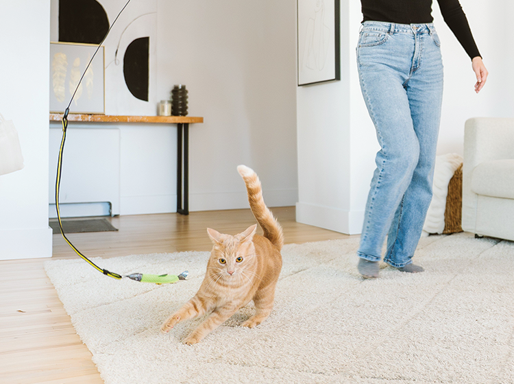 Swap the lures on the retractable cat teaser to extend the fun and keep your cat engaged for longer!