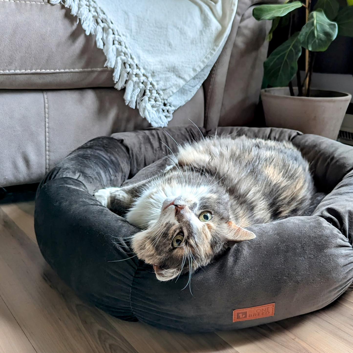 Cats love to roll up in a small bed because it keeps them warm and makes them feel secure