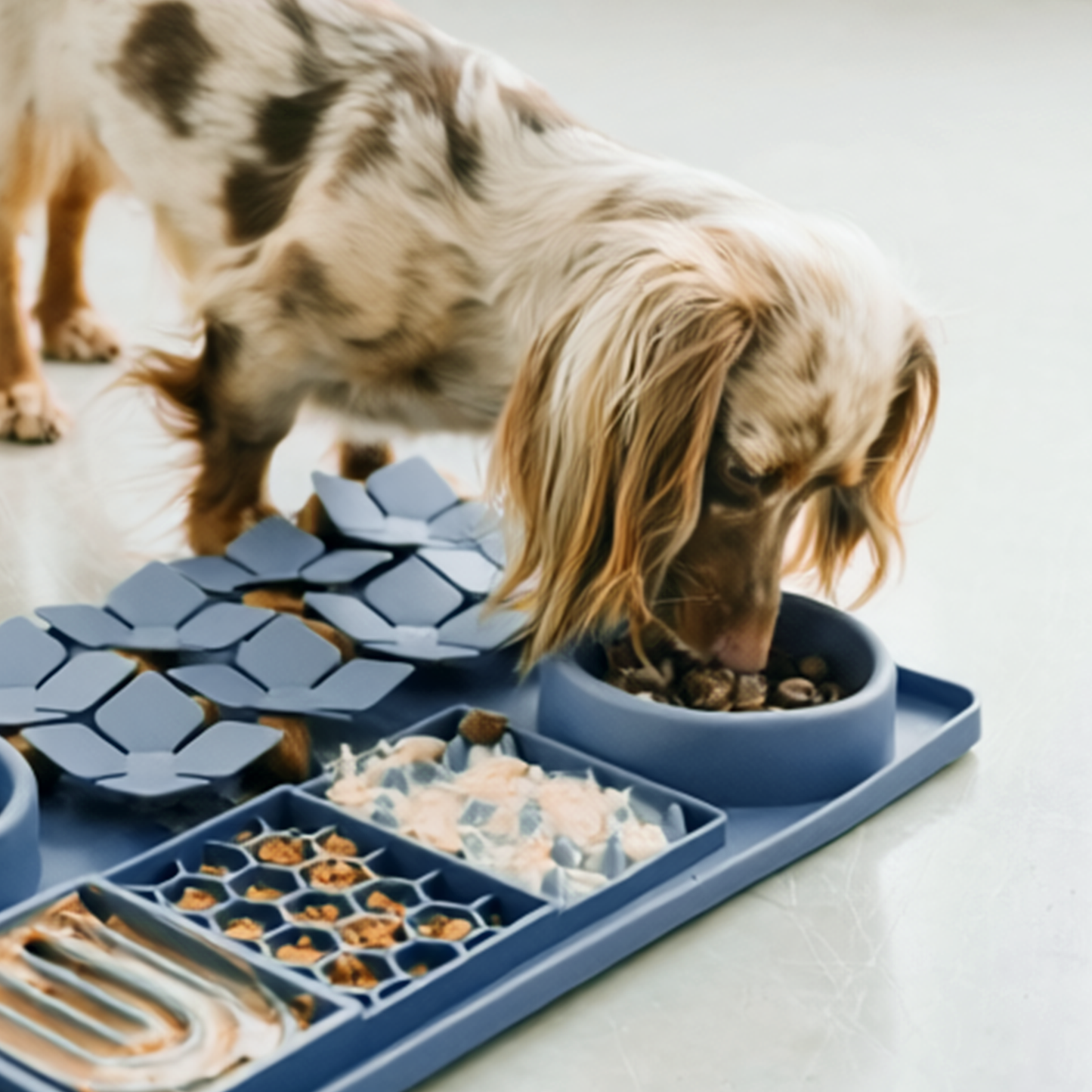 The variety of textures and obstacles encourage your pet to eat more slowly, promoting better food absorption and optimized digestion.